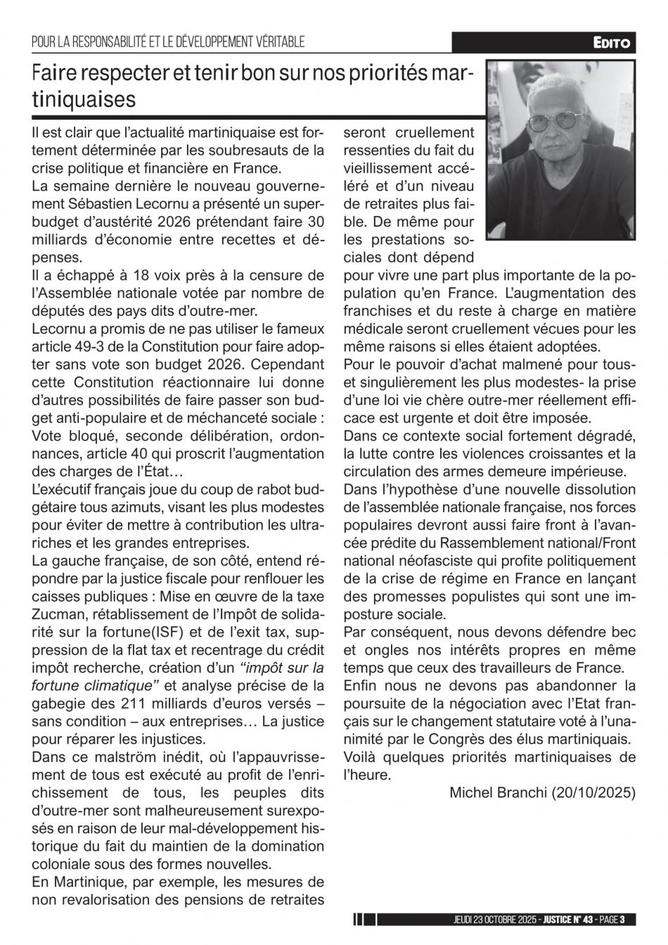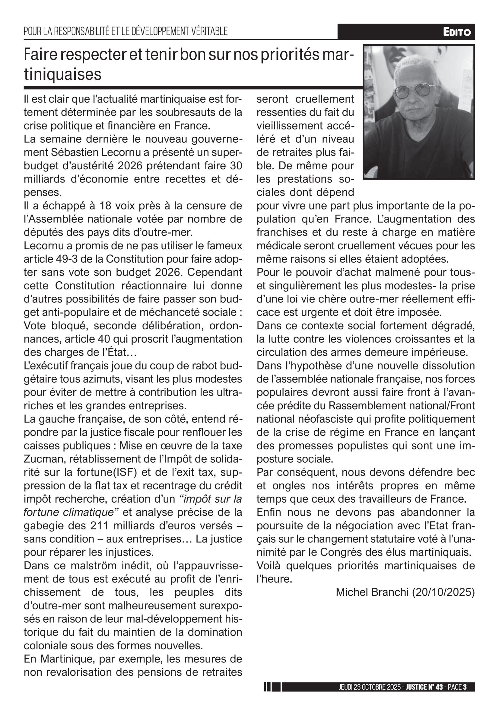 Il est clair que l’actualité martiniquaise est fortement déterminée par les soubresauts de la crise politique et financière en France.