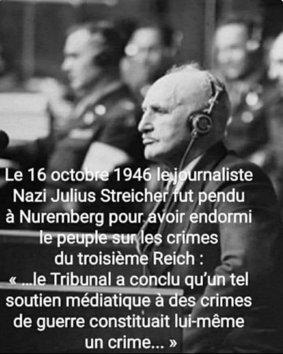Soit-dit en passant ces messieurs-dames ignorent peut-être qu'ils ne peuvent pas pratiquer la désinformation en tout impunité et sont susceptibles, dans certains conflits comme à Gaza, d'être inculpés pour complicité de crimes contre l'humanité. Tout comme les experts, intellectuels et autres leaders d'opinion qui squattent les plateaux des chaines d'information en continu. Qui ment, déforme, dissimule etc...ne peut se cacher derrière la vertueuse profession de journaliste ou le prestigieux statut d'expert !