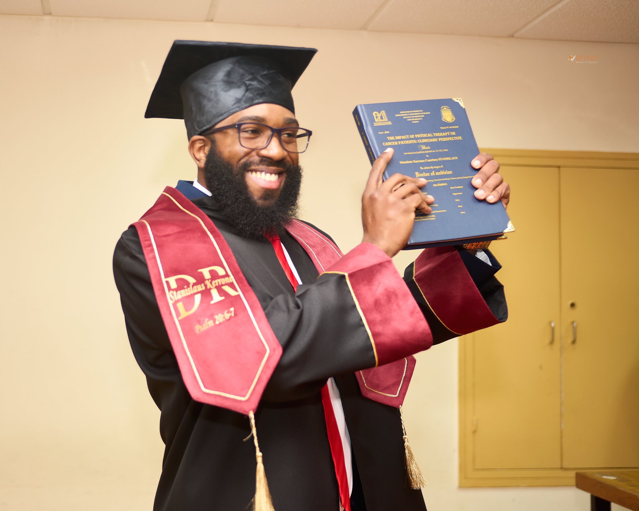That drive carried into his academic work. His thesis, titled The Impact of Physical Exercise Therapy on Cancer Patients: Clinicians’ Perspective, earned the school’s graduation prize.