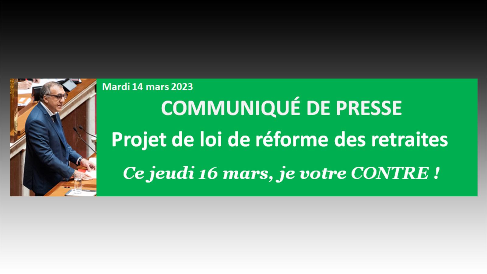 A l’Assemblée nationale, ce jeudi 16 mars, je voterai contre le projet de loi du gouvernement utilisant un support budgétaire pour porter sa réforme des retraites.