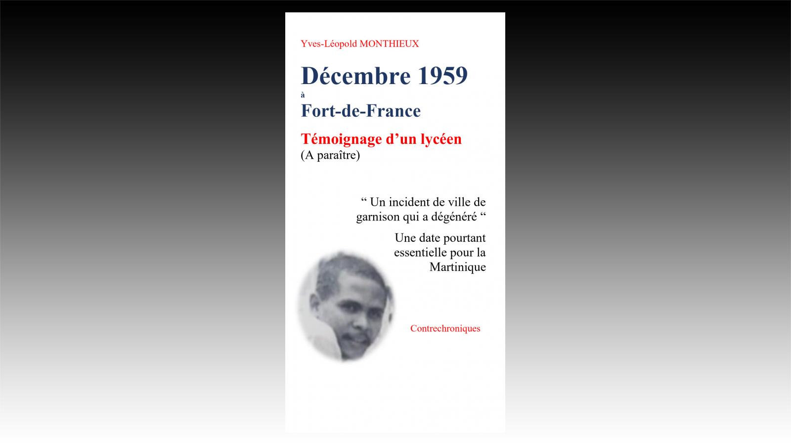 « Décembre 1959, témoignage d’un lycéen », c’est le titre de l’opuscule que votre serviteur publiera prochainement. Il démontrera la légèreté de la relation qu’en font les historiens des faits et dénoncera l’instrumentalisation politique de ceux-ci. Présent lors du premier jet de pierres, vers 18 heures, sur la place de la Savane de Fort-de-France, il a quitté les lieux à 19 heures 30, montre en main, après qu’un caillou destiné à l’hôtel L’Impératrice est venu terminer sa course à ses pieds, au bas de la rue Lamartine.
