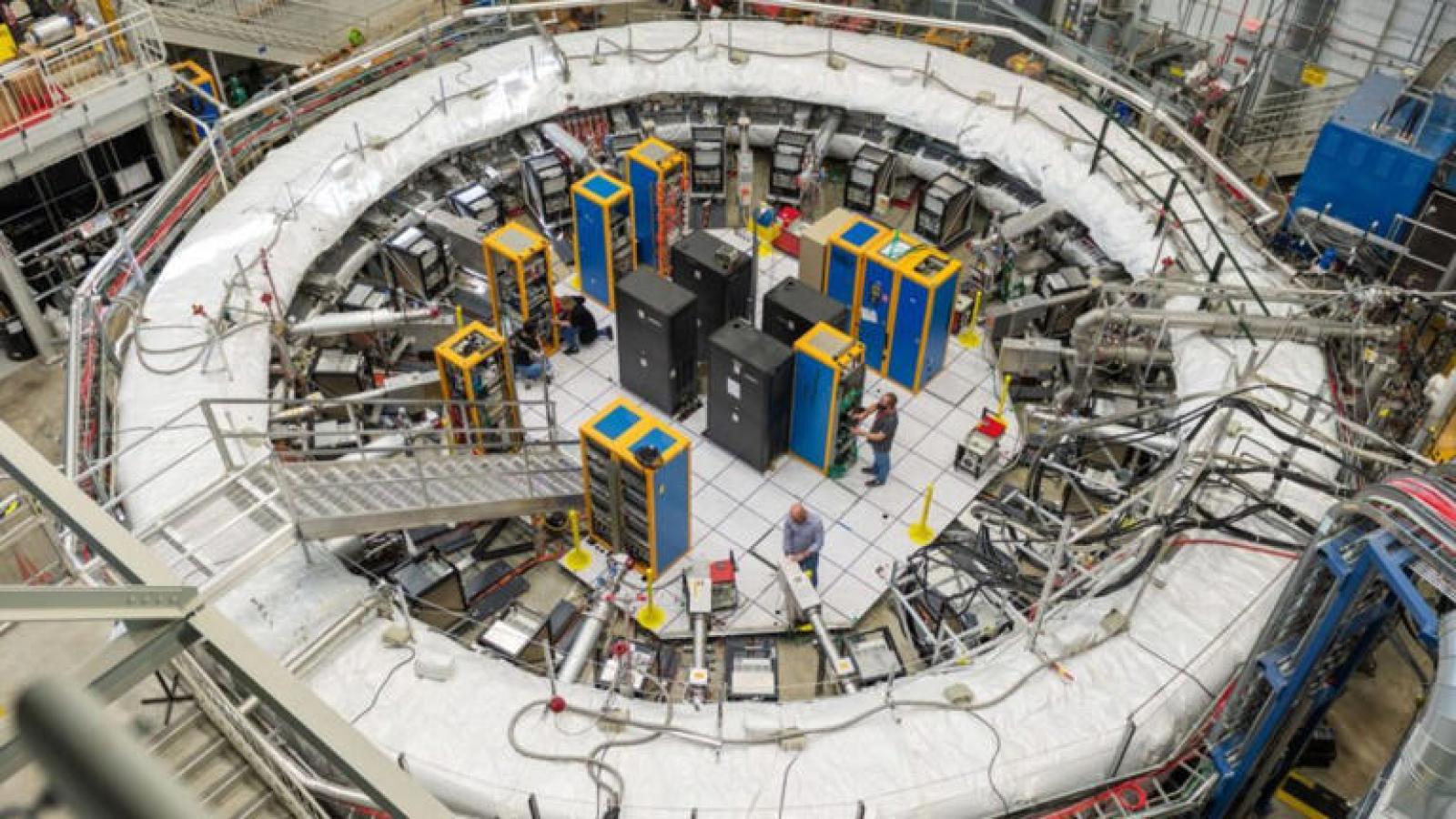 Pour cette expérience, les particules sont accélérées dans un anneau (celui sur la photographie ci-dessus), un accélérateur de particules, à une vitesse proche de celle de la lumière. Cela permet de procéder à des mesures de ces particules subatomiques en action, ce qui n’est pas une mince affaire puisque leur durée de vie est de deux millionièmes de seconde.