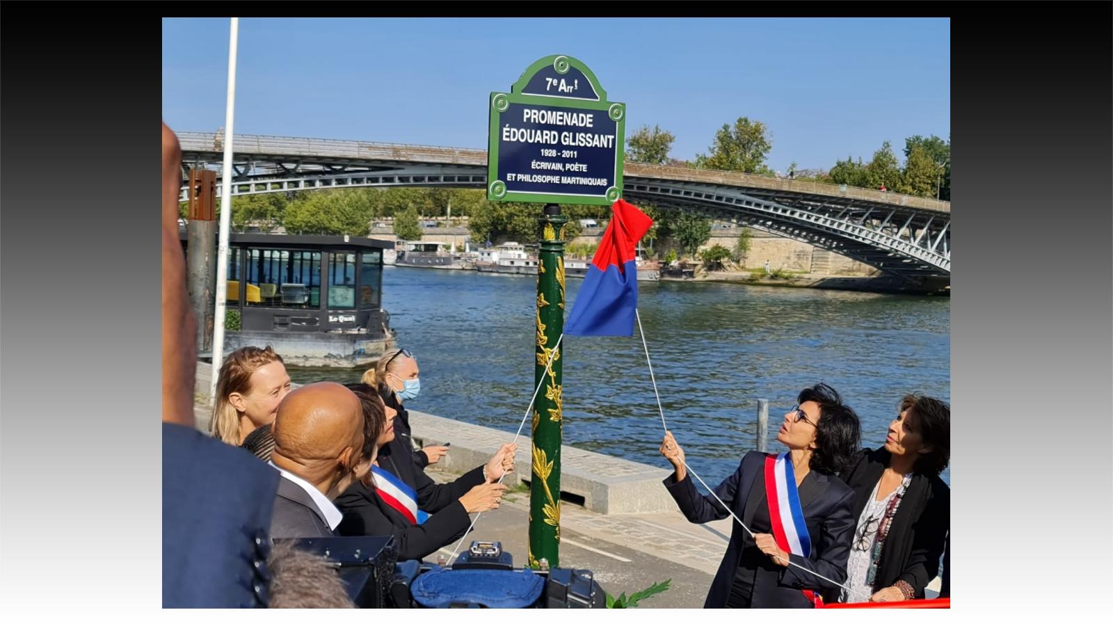 Ce 21 septembre, date d'anniversaire de la naissance d'Edouard GLISSANT, été inaugurée sur les berges de la Seine, par la mairesse de Paris, Anne HIDALGO, et cela sous un soleil radieux pour la saison, la Promenade Edouard GLISSANT, "poète, romancier et philosophe martiniquais" comme l'indique le panneau qui la signale.