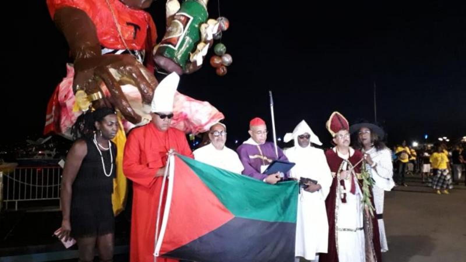 On se moque de tout en Mque ,surtout durant le Carnaval : des élus ,de Macron ,du Pape ,de Biden ,des religieuses ,de la France , des adventistes ,de Catherine Conconne ,de Kassav ,de ma belle-soeur etc...mais on ne pourrait pas se moquer du drapeau RVN. Au nom de quoi ?