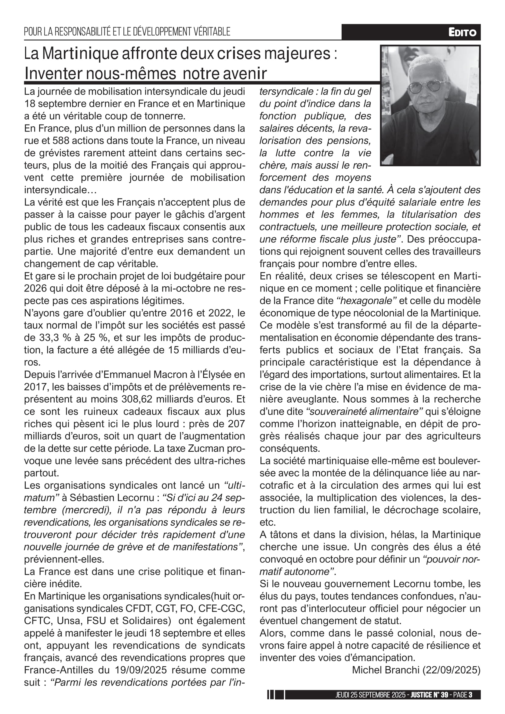 La journée de mobilisation intersyndicale du jeudi 18 septembre dernier en France et en Martinique a été un véritable coup de tonnerre.