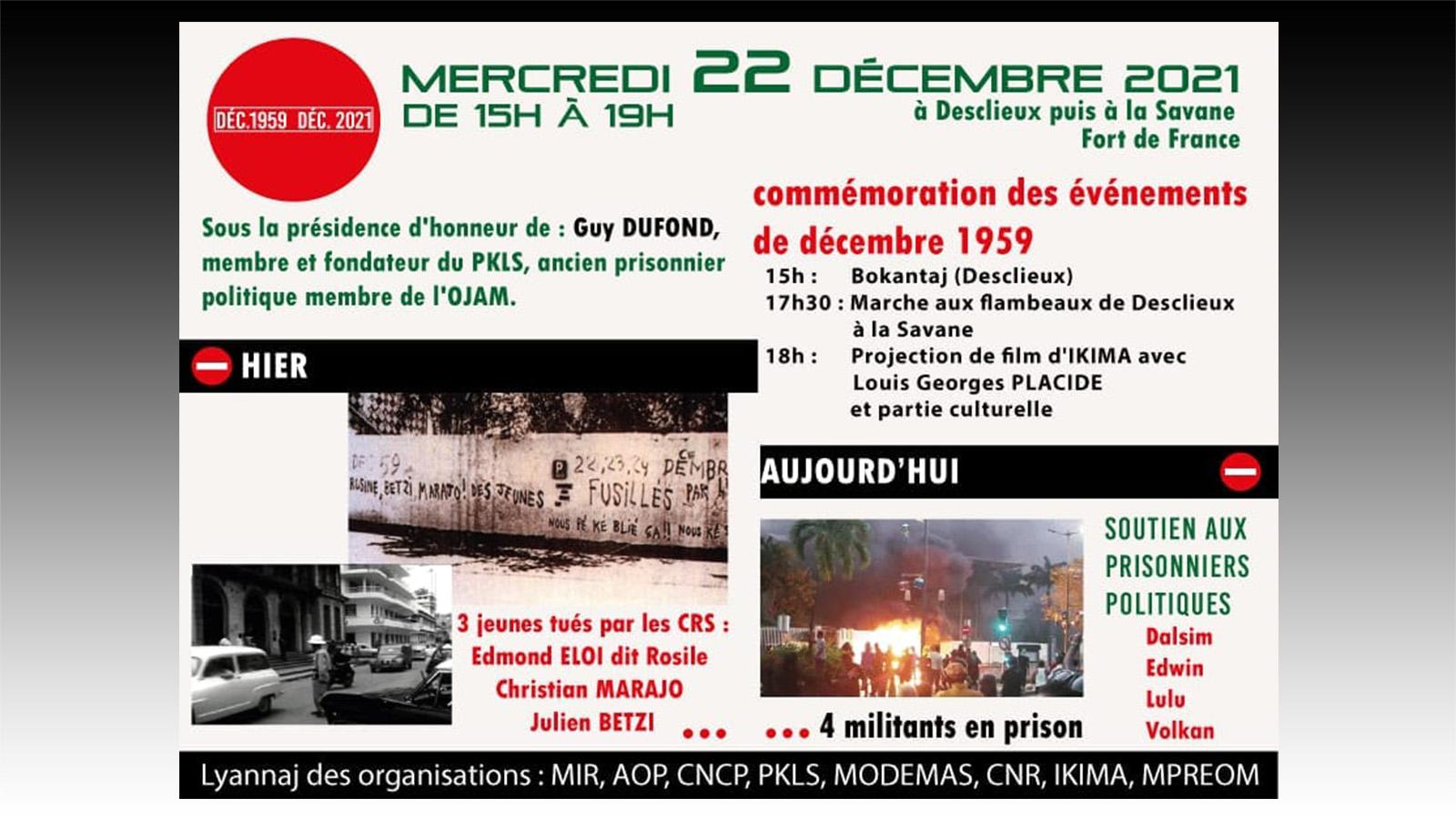 Cette manifestation vise à commémorer une page importante de l'Histoire martiniquaise : les révoltes de décembre 59 durant lesquelles les martiniquais se sont soulevés contre le colonialisme français et sa police raciste.