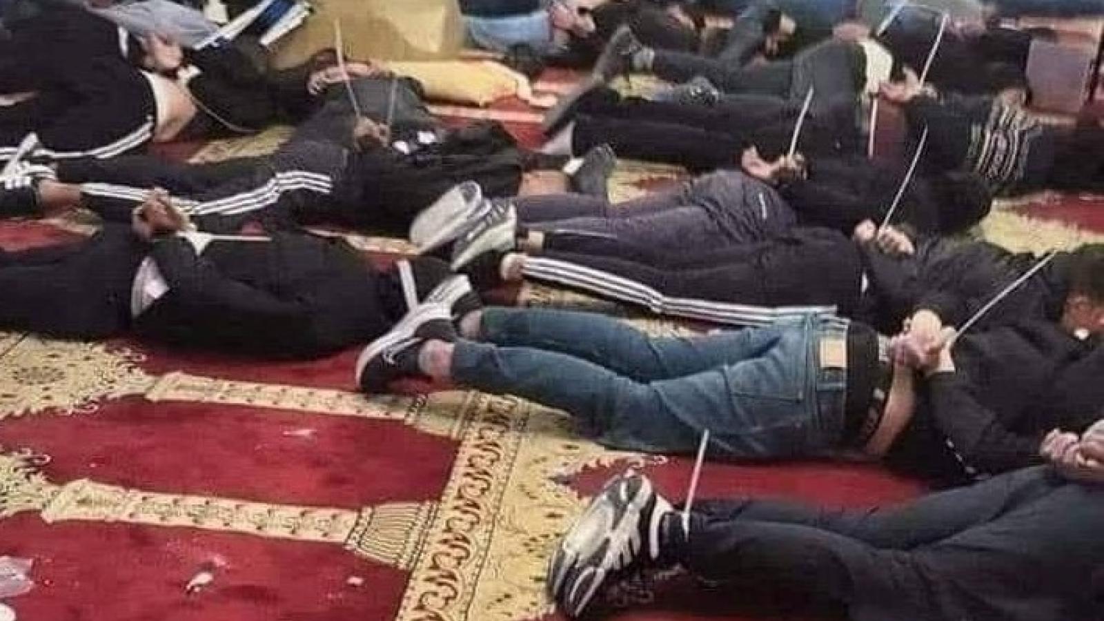 Gadé foto-a ka ilistré artik-tala : nou ka wè an patjé fidel éti larmé Izrayel la fòsé kouché atè ek maré épi kod kontel zannimo toubannman. Apré sa, i aresté 350 moun andidan moské-a ! Asiré-pa-pétet i pa té ké pé ni konpowtasion-tala si zot wè l'Ewop ek lé Zéta-Zini pa té dakò épi sa. Sé tala sé an bann ipokrit ki "esprimen préokipasion-yo" douvan salopté sé Izrayélien-an mé sé makakri ki la, pawol pou sa vèglé moun.
