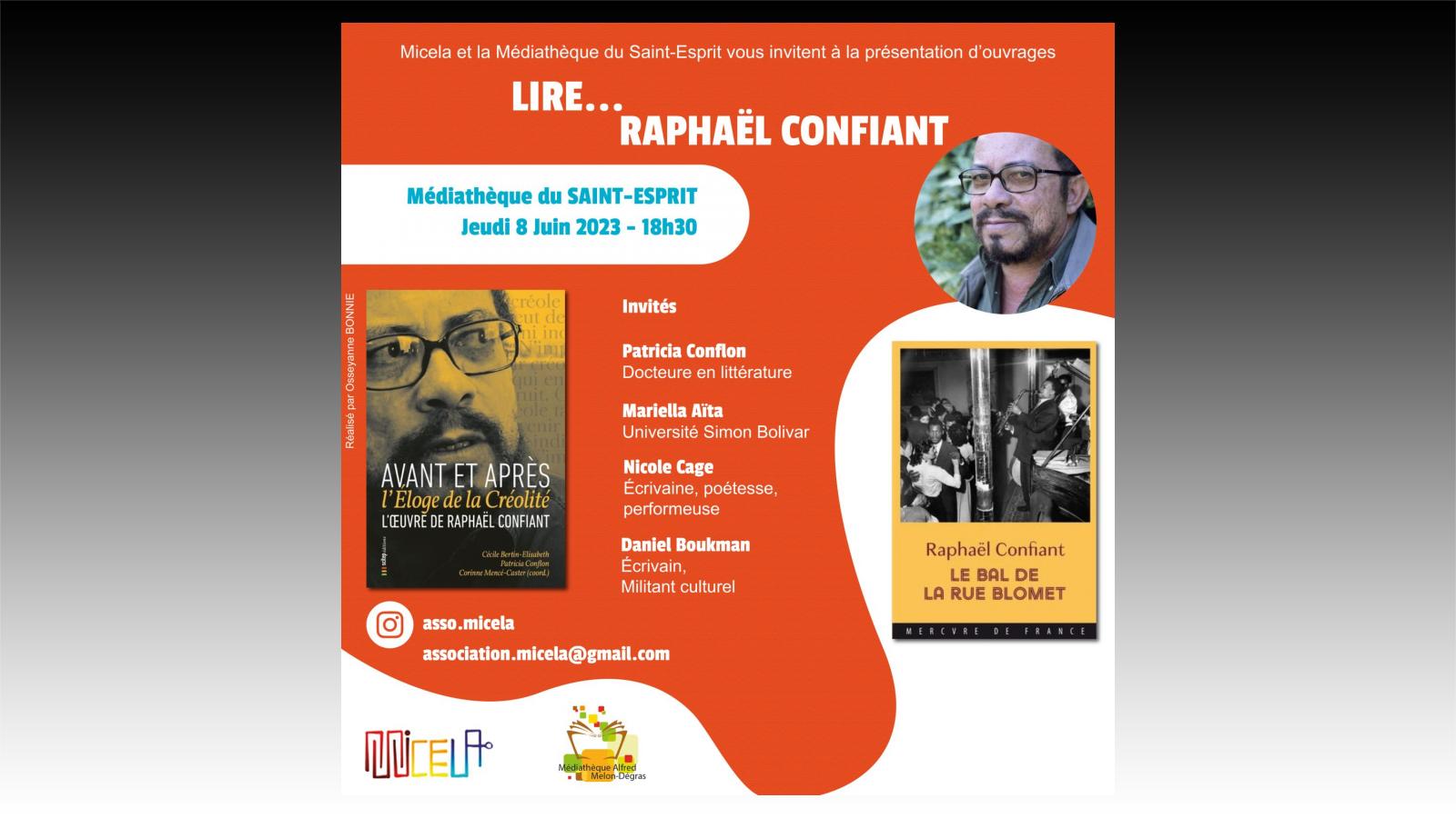 Ce jeudi 8 juin 2023 à 18h30 à la Médiathèque du Saint-Esprit (Ville du Saint-Esprit) « Retour sur le colloque « L'œuvre de Raphaël Confiant : avant et après l'Éloge de la Créolité »