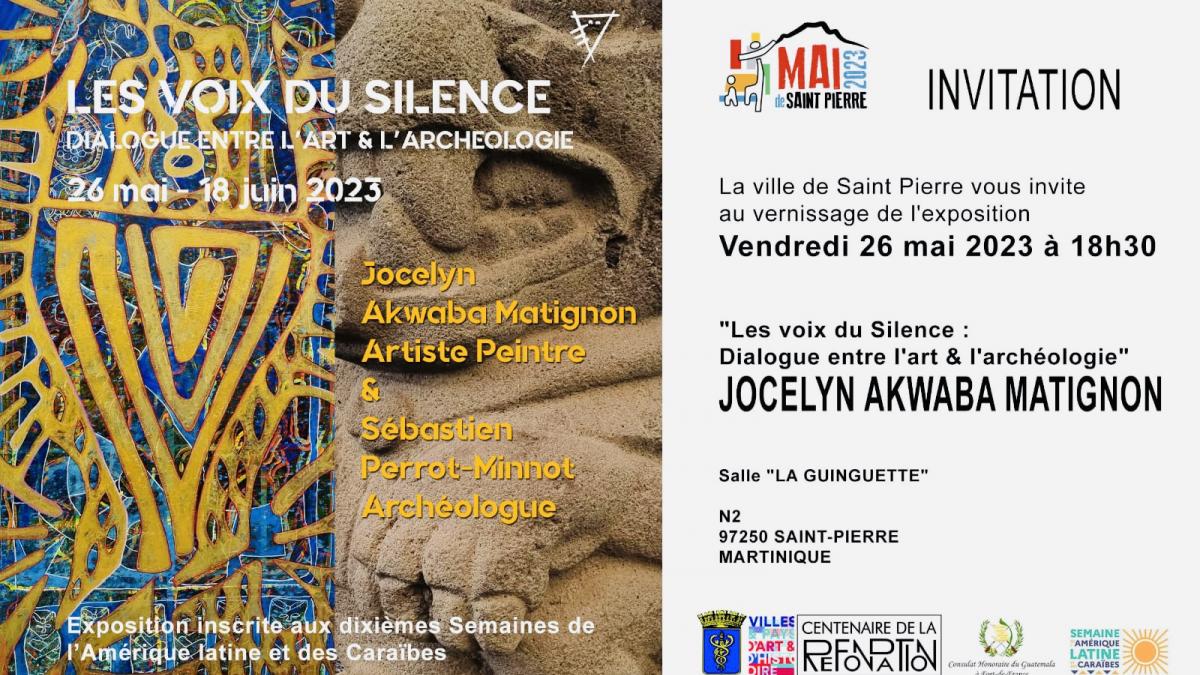 Dans le cadre de la 48ème édition de Mai de Saint-Pierre, la ville de Saint-Pierre, l'artiste Jocelyn Akwaba Matignon, l'archéologue Sébastien Perrot-Minnot, ont le plaisir de vous inviter au vernissage de l'exposition inscrite aux dixièmes semaines de l'Amérique Latine et des Caraïbes :