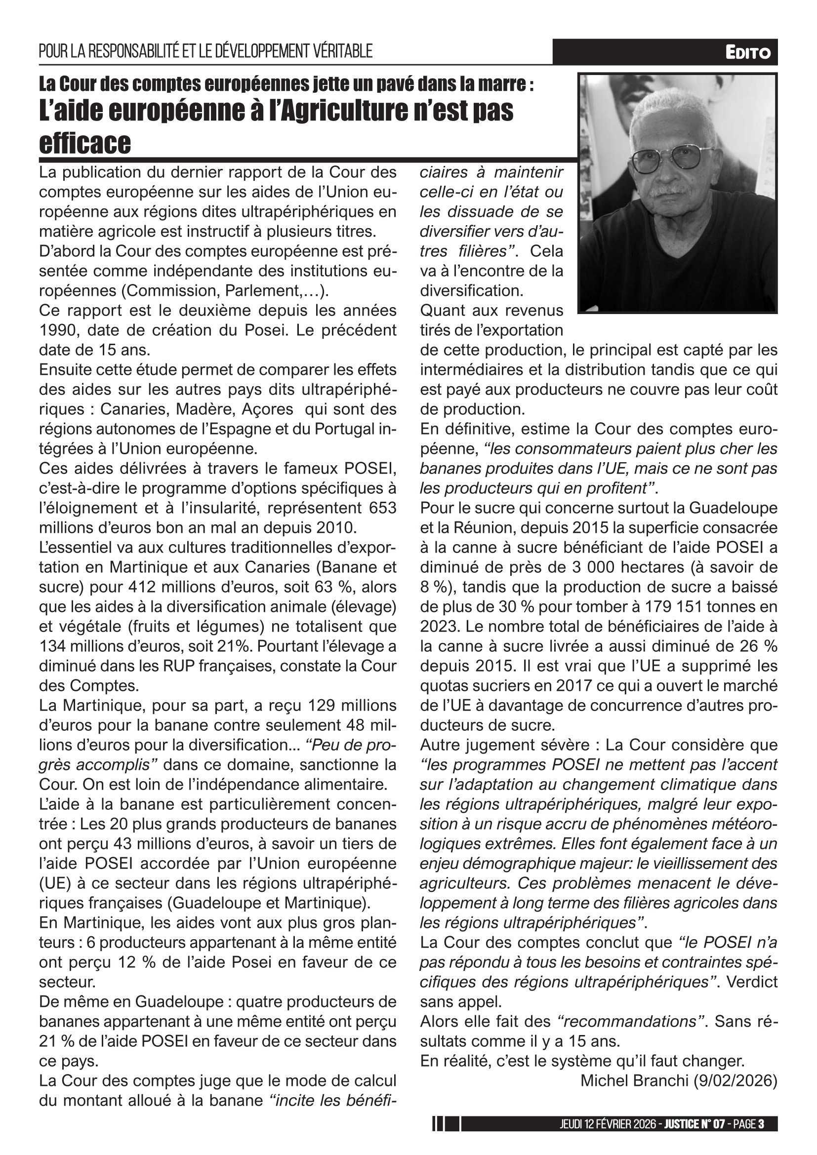 La publication du dernier rapport de la Cour des comptes européenne sur les aides de l’Union européenne aux régions dites ultrapériphériques en matière agricole est instructif à plusieurs titres.