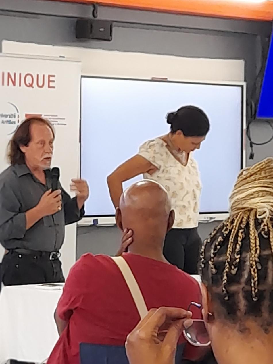 Dans la salle polyvalente de l’INSPE, un public conquis d’avance, et parmi eux une autre pointure de l’art (martiniquais) : Ernest Breleur. Selon le maître, son ancienne élève a atteint une pleine maturité dans son art : « Tu as pu construire un langage personnel […] Ton travail est une perception du paysage local, une œuvre qui est accomplie. » Tout a été dit !