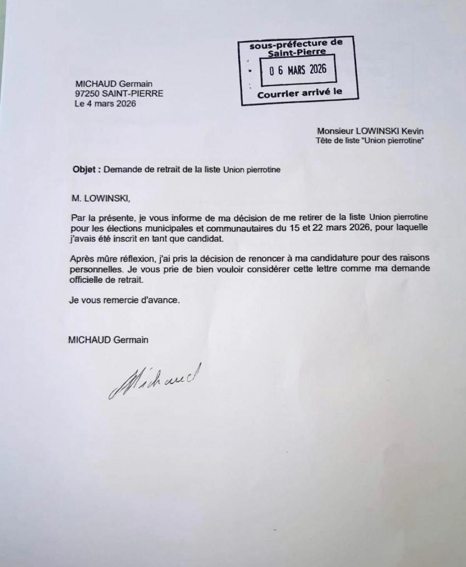 Germain Michaud, comme le montre les lettres ci-après (adressées au candidat Lowenski et au Préfet), a franchi le pas.
