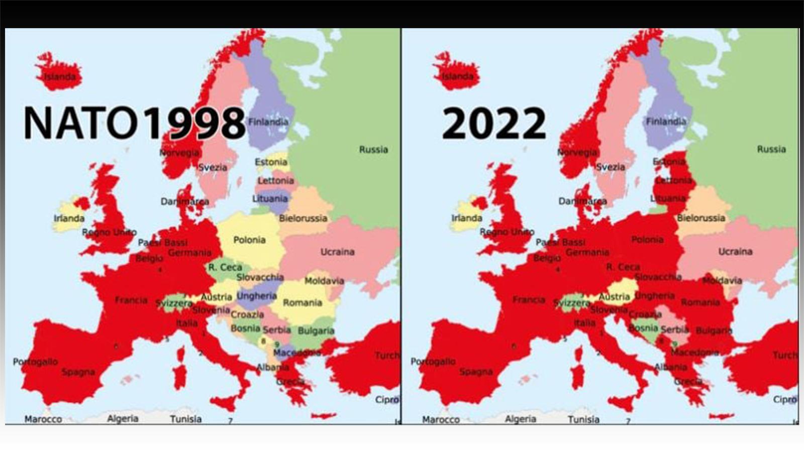Or, bien souvent et c'est le cas présentement, une carte (ici, en l'occurrence, deux) vaut mieux qu'un long discours. En les examinant avec attention, difficile de ne pas y voir une étonnante ressemblance. Pour ceux qui ne parlent pas anglais, NATO = OTAN.