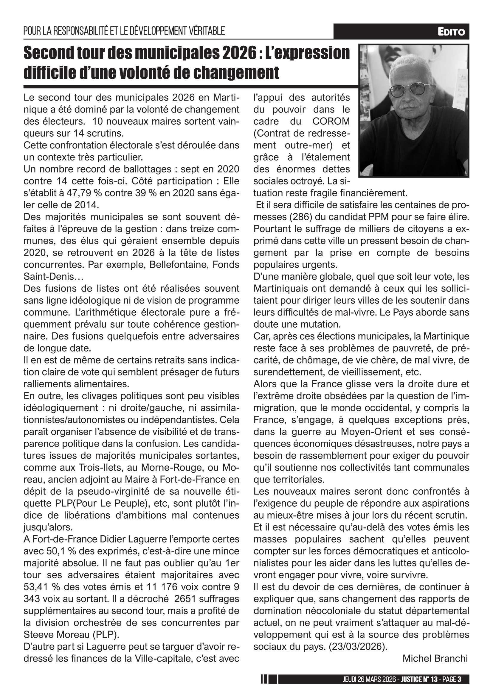 Le second tour des municipales 2026 en Martinique a été dominé par la volonté de changement des électeurs. 10 nouveaux maires sortent vainqueurs sur 14 scrutins.