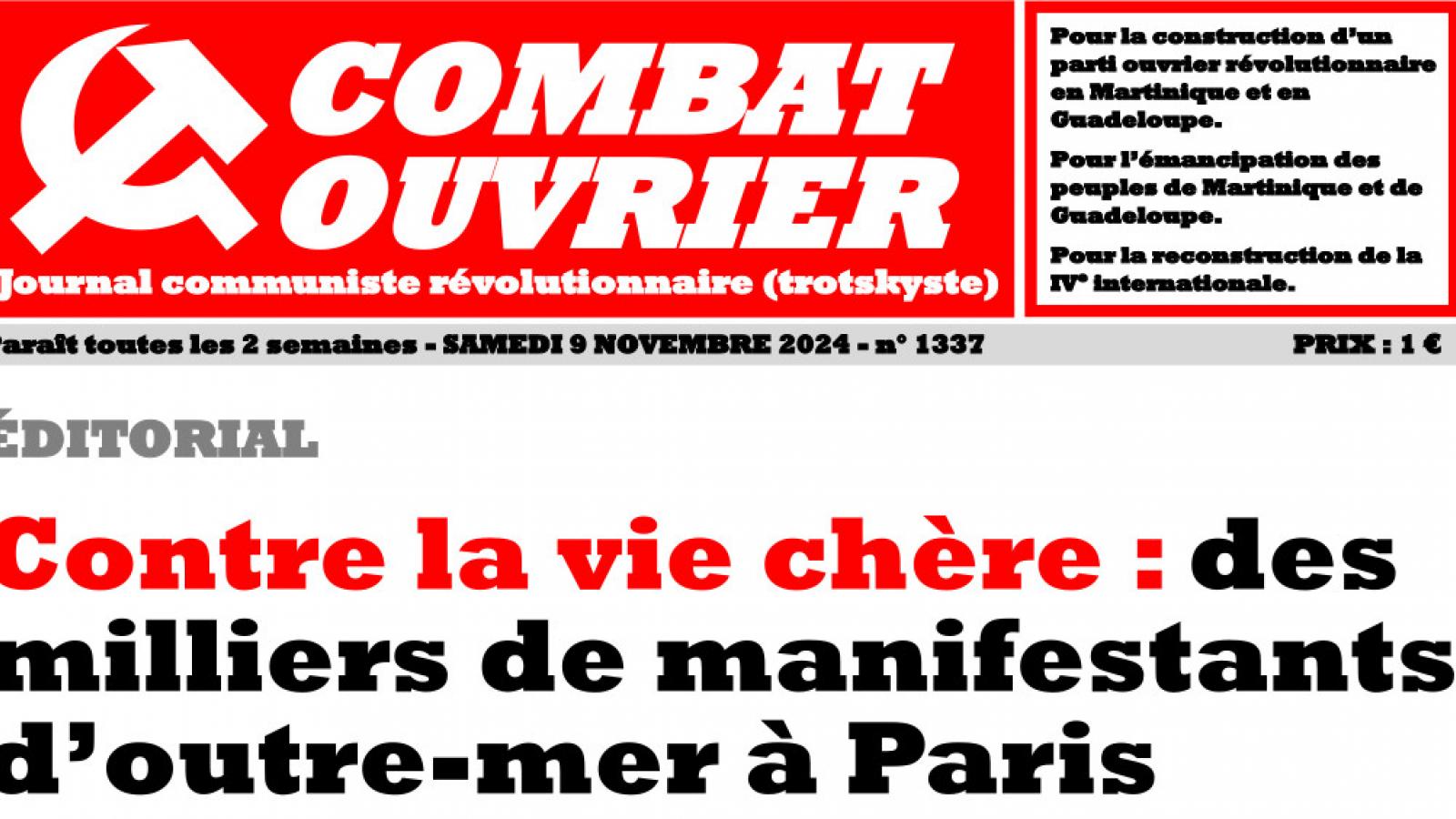 Voilà le numéro 1337 du samedi 9 novembre 2024 du journal Combat ouvrier. "Contre la vie chère, des milliers de manifestants d'outre-mer à Paris"
