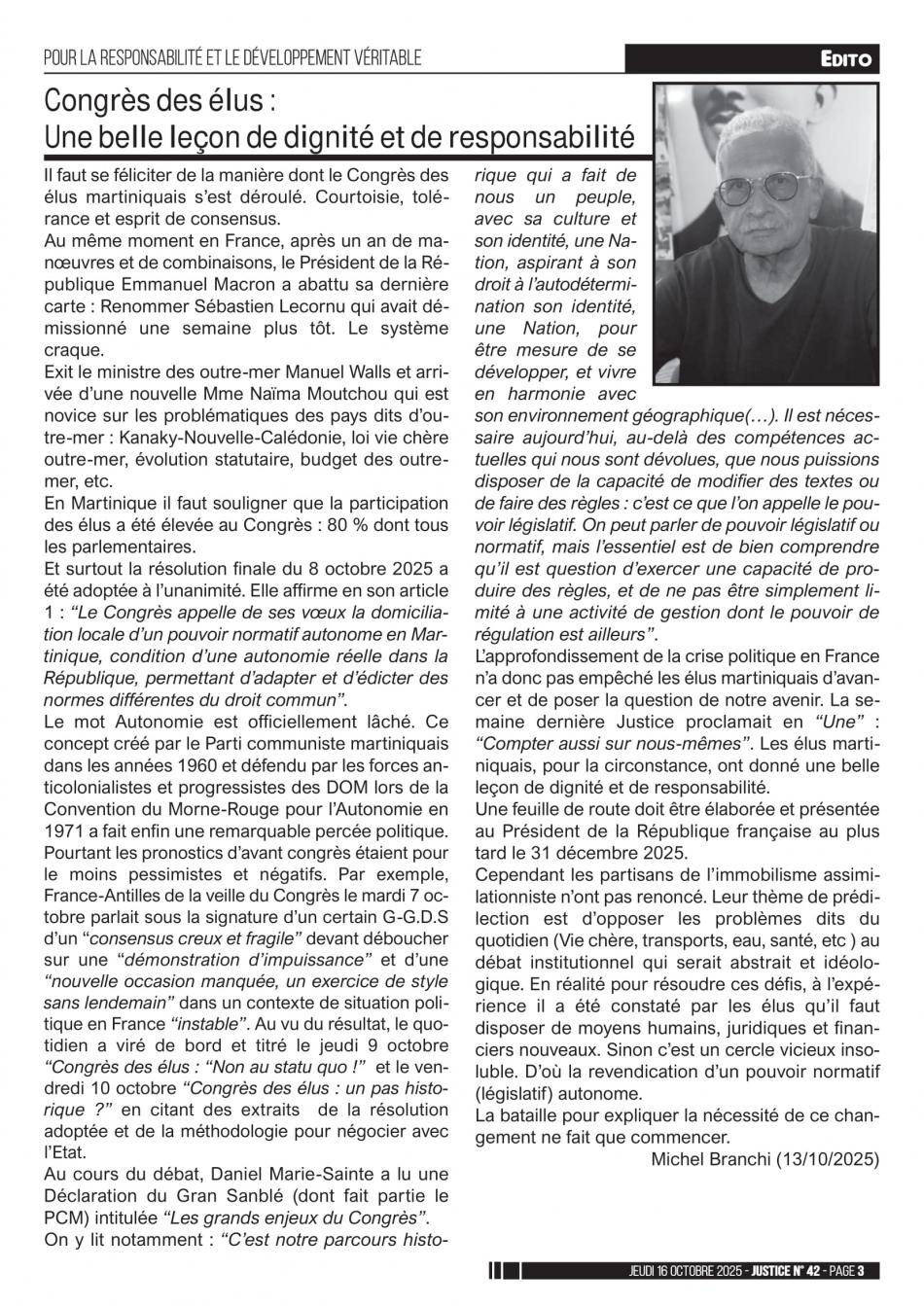 Il faut se féliciter de la manière dont le Congrès des élus martiniquais s’est déroulé. Courtoisie, tolé- rance et esprit de consensus.