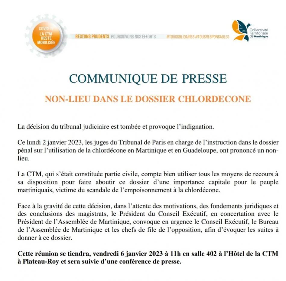 Après avoir nié (en 2007) le scandale du chlordécone et soutenu une association de revendeuses des marchés de Fort-de-France, Machann Foyal, qui avait défilé dans les rues de la "ville-capitale" en conspuant les écologistes, notamment les auteurs de l'ouvrage Chronique d'un empoisonnement annoncé à savoir L. Boutrin et R. Confiant, la CTM-Letchimy s'est brusquement réveillée en 2021 avec le dépôt d'une plainte contre...Qui ? On ne sait pas vraiment. Les importateurs békés du chlordécone ? L'Etat français ? Sa justice ? Ou alors contre X...