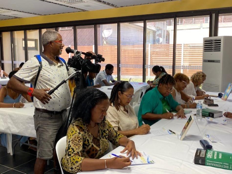 Ainsi, ce samedi 14 octobre, dans le cadre d'un partenariat existant depuis l'an dernier entre la municipalité du Saint-Esprit et la Médiathèque Alfed Melon-Dégras d'une part et Martinique-Ecologie de l'autre, a été organisée la toute première "dikté" de ce Mois du Créole 2023. Une soixantaine de personnes y ont participé à partir d'un texte rédigé par Raphaël Confiant, texte consacré au chlordécone que l'on trouvera ci-après, et lu par Jocelyne Mouriesse. Au termes des délibérations d'un jury composé de Roland Davidas, Léandre Marimoutou, Paulette Marimoutou, Jocelyne Café et Jean-Louis Lowensky, le verdict est tombé : 3 candidats se sont distingués comme suit :