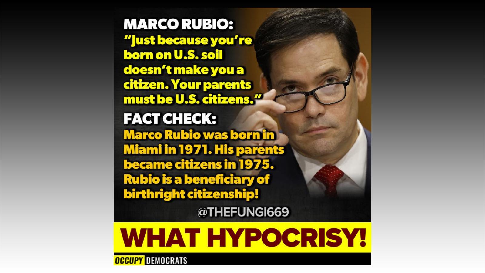 Sauf que lorsqu'on jette un oeil à l'origine dudit Rubio on s'aperçoit que s'il est né à Miami, ses parents à lui étaient des Cubains qui avaient fui le régime de Fidel Castro. Ils n'ont d'ailleurs été naturalisés américains qu'en...1975 !