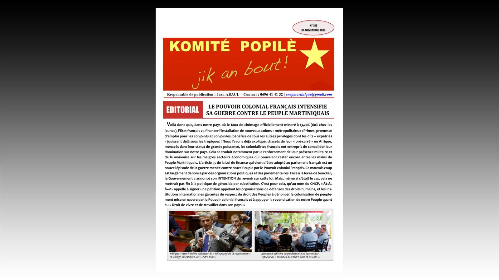 - Le pouvoir colonial français intensifie sa guerre contre le Peuple Martiniquais
