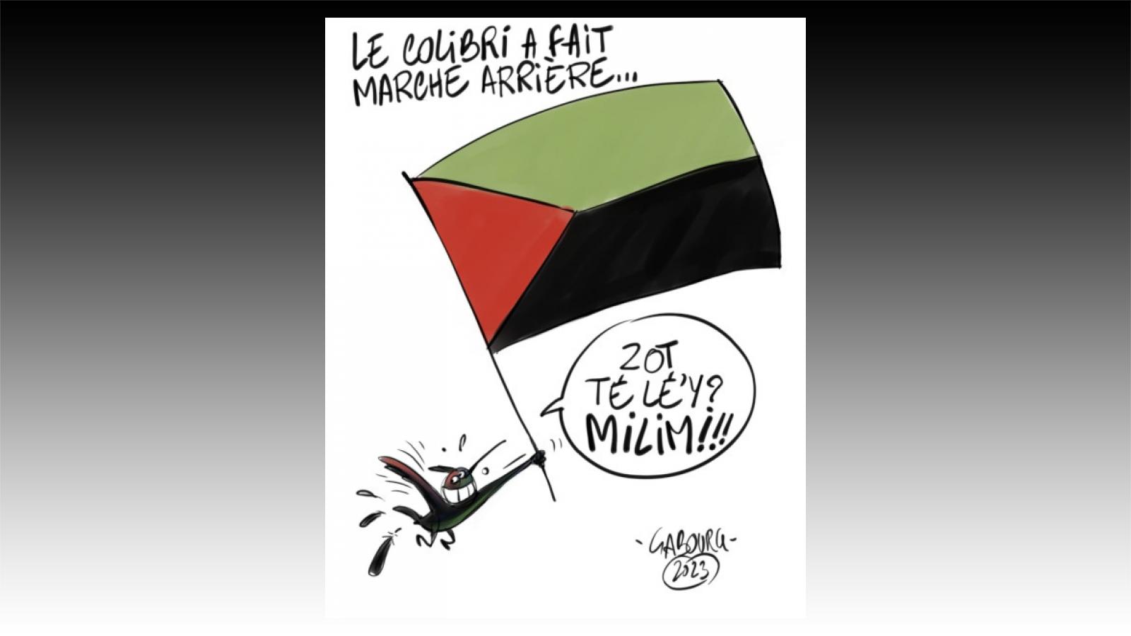 Mé pli red-la, sé zafè drapo-a. Moun an ki genyen konkouw-la fè machariè, i rédi kanno’y. Asiparé komkidiré yo té ké zagalé’y ek tizonnen’y anlè rézo sosio. Kolibri-a fè machariè. Drapo wouj vè nwè-a ka rété tou sel mes sé pa an drapo fòsan?