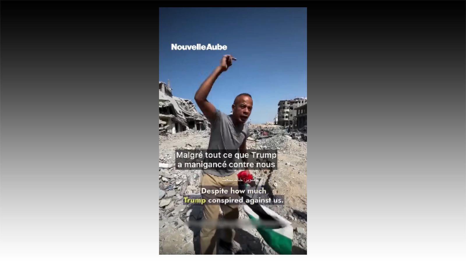 Mais si le peuple palestinien, dépourvu d'armée, d'aviation et de marine a pu résister pendant deux ans à l'agression génocidaire des israélo-occidentaux, il ne se laissera jamais faire comme l'exprime ce Gazaoui dans la vidéo ci-après. JAMAIS !